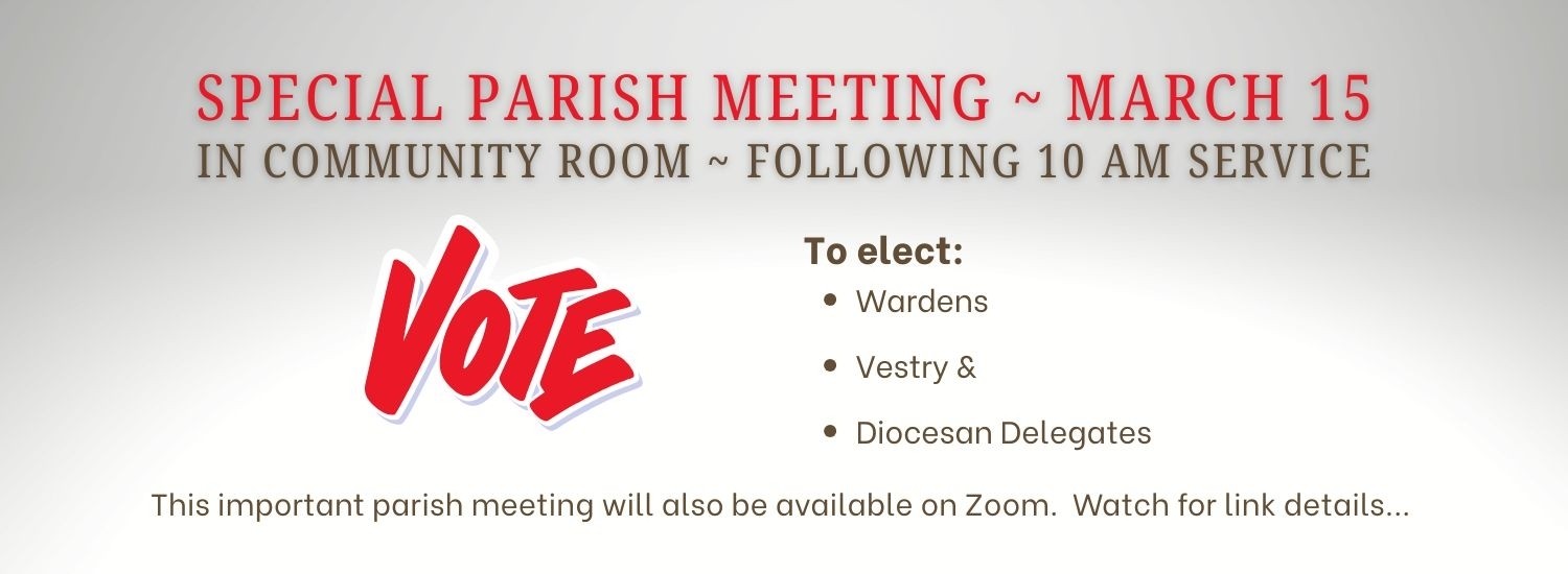 Sunday, March 15, after 10 am Service in the Community Room, to elect Wardens, Vestry and Diocesan ...